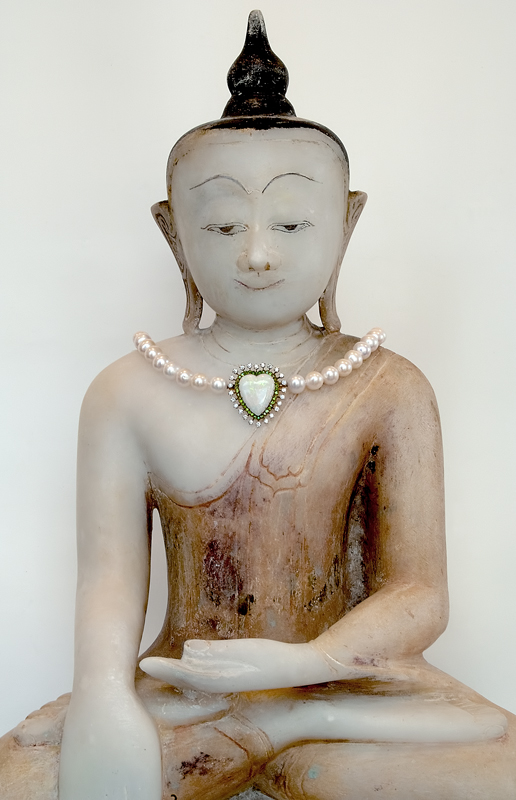 Opalherz mit Diamanten und Demantoid in Gold 15 kt – 625er Gold England ca. 1860 – 1880 24 Diamanten – Altschliff, insgesamt ca. 2 ct.